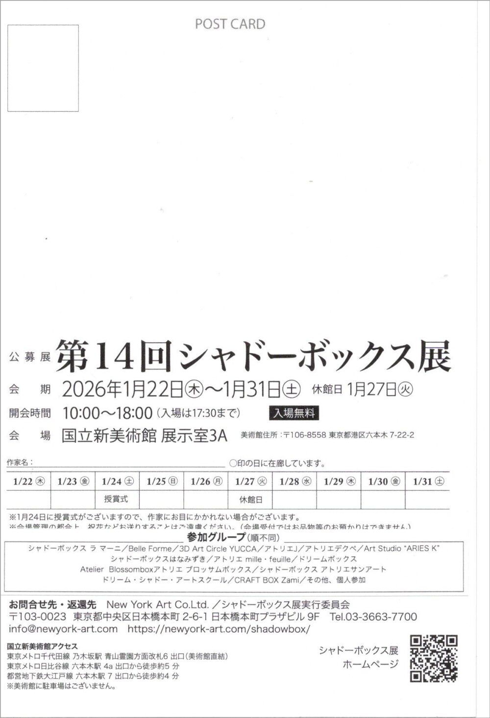 お問合せ/ New York Art Co.Ltd. シャドーボックス展実行委員会 Tel.03-3663-7700 info@newyork-art.com